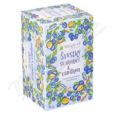 Ovocný aromatizovaný čaj s příchutí švestky, skořice a vanilky. Balení obsahuje 20 nálevových sáčků po 2 g.