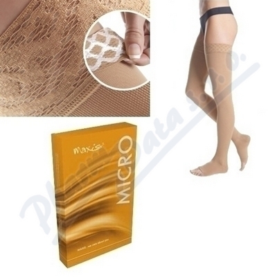 Elegantní matné kompresivní stehenní punčochy MAXIS® MICRO jsou vyrobeny z velmi jemného úpletu s vysokým podílem mikrovlákna. Obsahují antibakteriální a protiplísňovou úpravu. V provedení se špičkou nebo bez, s lemem nebo krajkou. V barvě brozn.