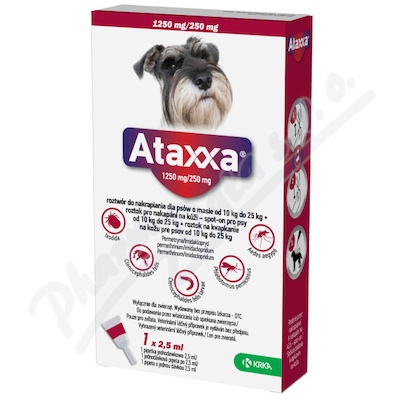 Účinnost proti infestaci klíšťaty. Repelentní účinnost (zabraňující sání) proti klíšťatům, komárům a muškám. Léčba a prevence infestace blechami. Snížení rizika infekce Leishmania infantum přenosem flebotomy.