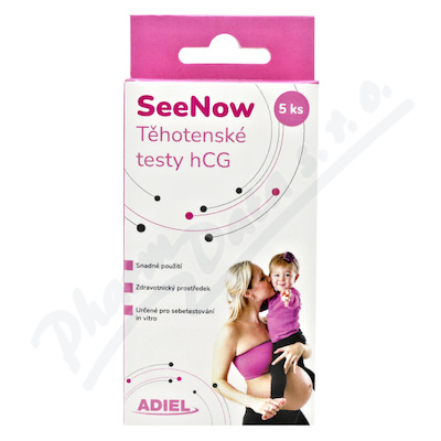 Zjistěte pohodlně a v soukromí, jestli jste těhotná. Těhotenský test hCG slouží k zjištění včasného těhotenství. ADIEL Seenow Těhotenský test hCG je zdravotnickým prostředkem, před použitím pečlivě čtěte příbalovou informaci. Citlivost 25 mIU/ml hCG.