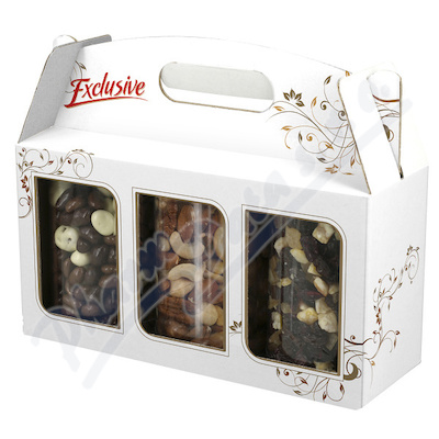 Směs TRIMIX krabička - obsahuje 3 dózy výrobků - směs ovoce 300g, směs dražé 400g a směs ořechů 300g.