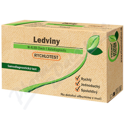 Rychlotest Ledviny je samodiagnostický test na detekci albuminu v moči. Jednoduché a rychlé použití.