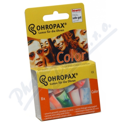 Chrániče sluchu OHROPAX Color 8ks v plastovém obalu na zavěšení. Jsou jemné, měkké, anatomicky tvarované a příznivě působící na sliznice vnějšího zvukovodu. Jsou vyrobeny z měkké polyuretanové pěny,různých barevných odstínů.