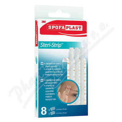 Spofaplast náplasťové stehy Steri-Strip jsou lepící proužky, které se používají k zajištění, uzavření a na podporu malých řezných ran a poranění. Použijte podle pokynů lékaře nebo poskytovatele zdravotní péče na ošetření drobných řezných ran a poranění.