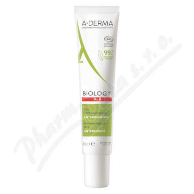 A-DERMA BIOLOGY Dermatologická péče snižuje začervenání pleti se sklonem k rosacee. Zklidňuje, snižuje pocity diskomfortu pleti a zamezuje opakovanému návratu začervenání. Bez parfemace. 99% složek přírodního původu.