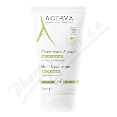 A-Derma Krém na ruce a nehty s bio certifikací obsahuje kyselinu hyaluronovou, vyživuje, zklidňuje a regeneruje pokožku a také okamžitě snižuje její suchost o 59%.