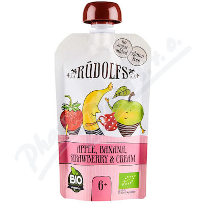 Ovocný bezlepkový příkrm se smetanou pro zvláštní výživu kojenců a malých dětí od ukončeného 6. měsíce. Bez přidaného cukru (obsahuje pouze přirozeně se vyskytující ovocné cukry).