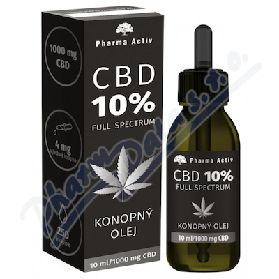 Konopný olej CBD 10% 10 ml, v balení 1000mg CBD, 4mg CBD v jedné kapce, 250 kapek v balení 10ml. Plně spektrální CBD konopný olej. Full Spectrum Olej.