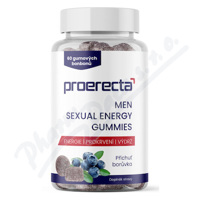 Proerecta Men Sexual Energy gummies s borůvkovou příchutí, přispívá ke zvýšení energie, prokrvení a výdrže.