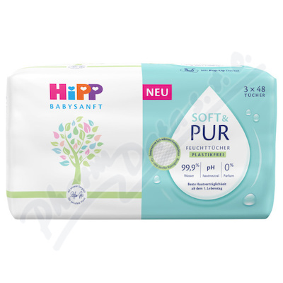 Dětské vlhčené ubrousky Soft & Pur vynikají svou čistotou složení a poskytují šetrné a přitom dokonalé očištění citlivé pokožky miminka již od narození. Obsahují 99,9 % vody a jsou zcela bez parfemace.