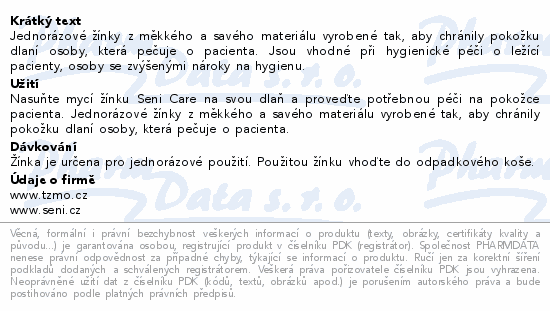 Jednorázové žínky z měkkého a savého materiálu vyrobené tak, aby chránily pokožku dlaní osoby, která pečuje o pacienta. Jsou vhodné při hygienické péči o ležící pacienty, osoby se zvýšenými nároky na hygienu.
