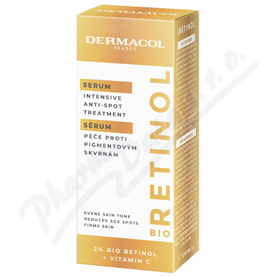 Bio Retinol sérum zesvětluje pigmentové skvrny a zabraňuje její hyperpigmentaci. S Bio Retinolem a lipozomálním vitaminem C účinně redukuje pigmentové skvrny. Péče s vitaminem B3 a squalanem pokožku hydratuje a posiluje kožní bariéru.