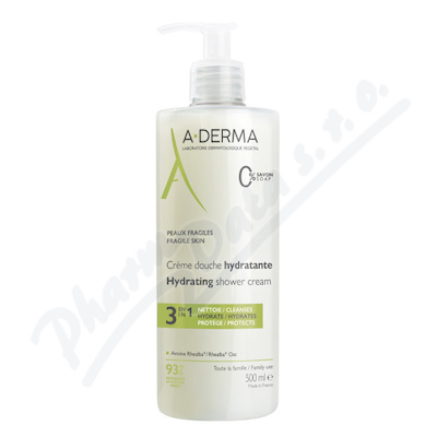 A-DERMA Hydratační sprchový gel 500 čistí, hydratuje a chrání. Bez mýdla. Vhodný na obličej, tělo a vlasy.
