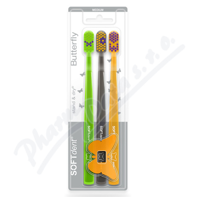 Zubní kartáček v provedení Butterfly -Stand & Dry. Pro každodenní šetrnou ústní hygienu. Stojánek s patentovaným otvorem pro odstranění vody.