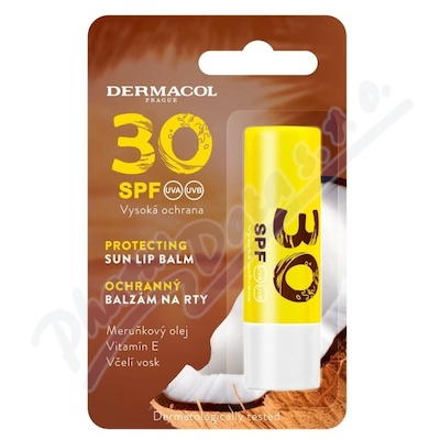 SUN voděodolný balzám s ochranným faktorem SPF30 s vůní kokosu rty ochraňuje, regeneruje a poskytuje intenzivní hydrataci a ochranu před slunečním zářením. Obsahuje meruňkový, slunečnicový olej a včelí vosk. Vhodný i pro citlivé rty.