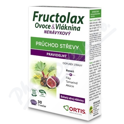 Fructolax je bohatým zdrojem vlákniny, působí jemně a účinně na průchod střevy. Reveň napomáhá pravidelné funkci střev. Tamarind napomáhá střevnímu průchodu mechanicky. Fíky pomáhají upravit rytmus střev.