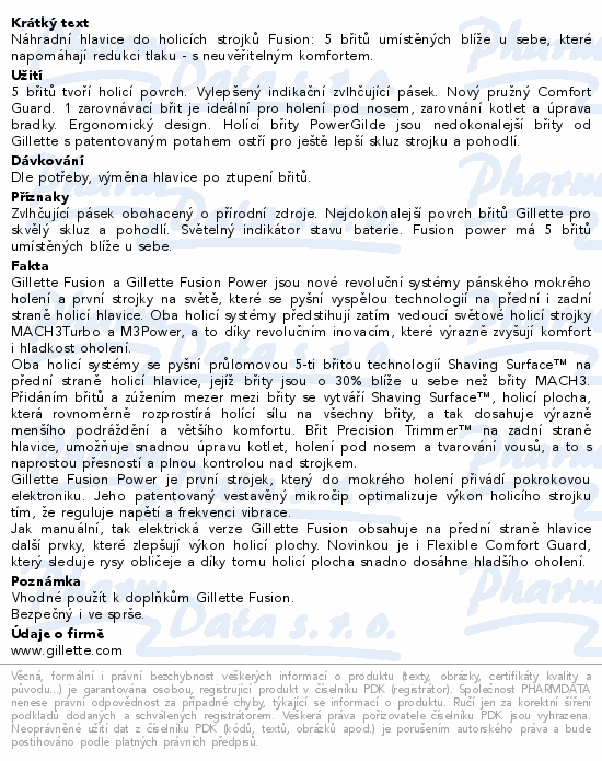 Náhradní hlavice do holicích strojků Fusion: 5 břitů umístěných blíže u sebe, které napomáhají redukci tlaku - s neuvěřitelným komfortem.