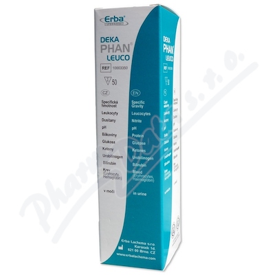 Močové proužky pro kompletní analýzu moče. Stanovení obsahu 10 klinicky významných analytů v moči - krve, leukocytů, bilirubinu, urobilinogenu, ketonů, glukózy, proteinů, pH, dusitanů a specifické hmotnosti.