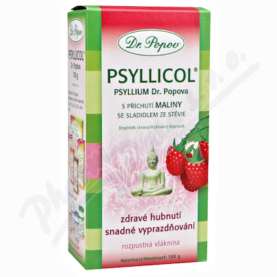 Psyllicol® – rozpustná vláknina Psyllium Dr. Popova s příchutí maliny se sladidlem ze stévie. Napomáhá správnému vyprazdňování. Navozuje pocit sytosti.