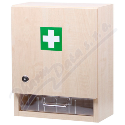 Lékárnička je určena pro firmy a provozovny do 20 osob. Je vybavena zdravotnickým materiálem, obsahuje plastovou zásuvku a je uzamykatelná. Součástí je rovněž montážní materiál.